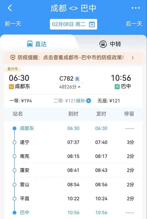 K835/K838次列車目前是停運狀況,預計于10月29日恢復通車。從巴中站到深圳西站總共有26站,16:02發(fā)車 ,第三天 07:10到達,全程耗時約39小時08分鐘 。